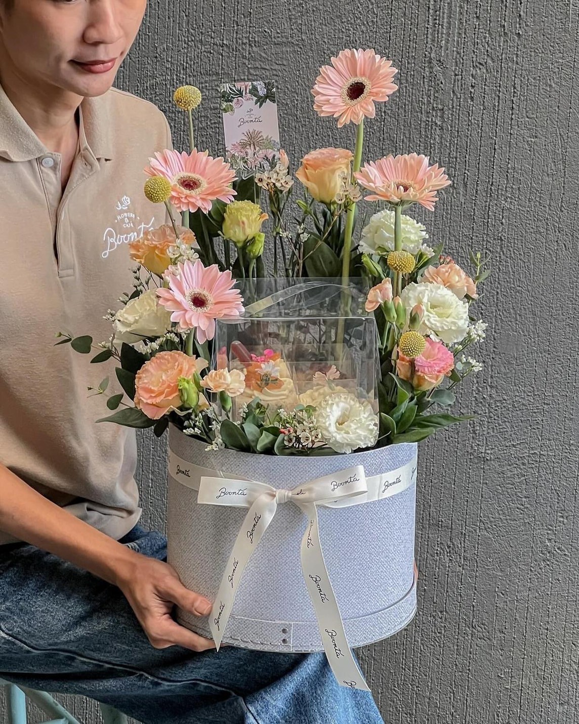 Idea ริบบิ้นผูกดอกไม้ กระเช้าดอกไม้ และกล่องบรรจุดอกไม้